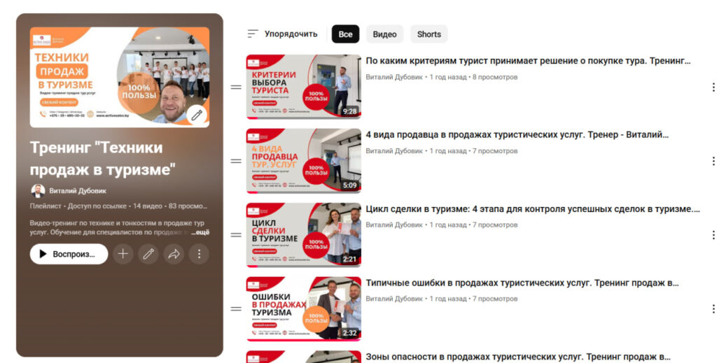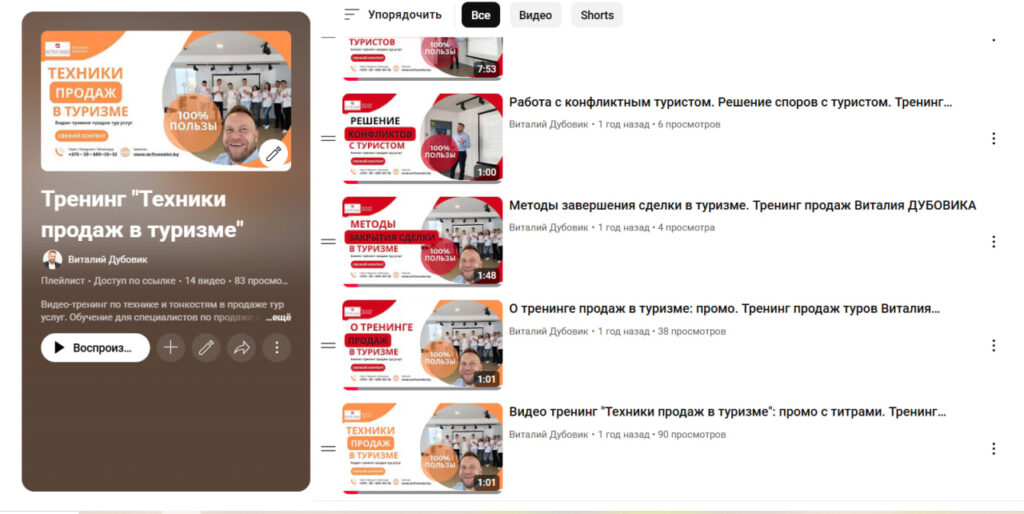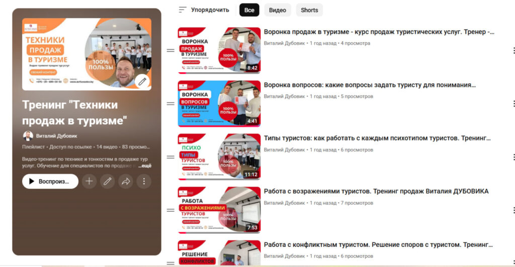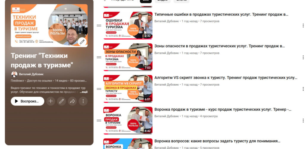 - 12 видео снятых на живом тренинге продаж услуг туризма
