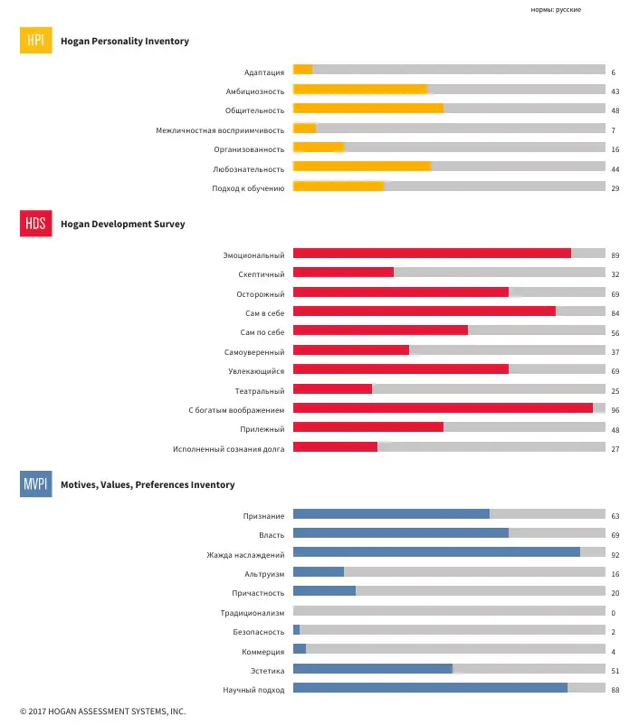 Оценка проводится сертифицированными консультантами Hogan Assessment Systems